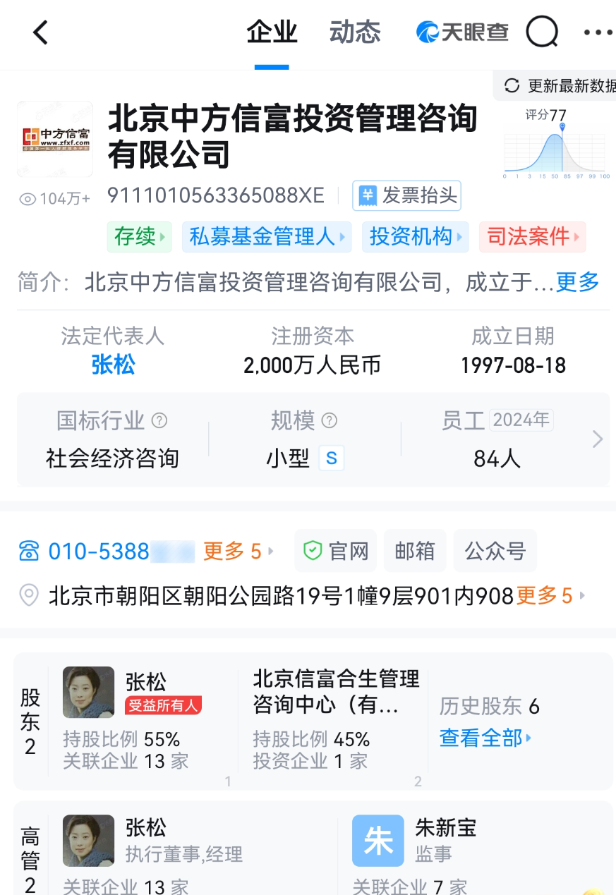 公开信息显示,中方信富成立于1997年,是一家面向国内和国际资本市场从事资本市场投资咨询及相关服务业务的全国性投资管理咨询公司。中方信富注册资本为2000万元,是经证监会批准具备证券投资咨询执业资格的公司。