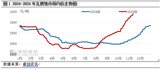 8月份以来,瓦楞纸价格呈现一路上涨趋势,涨势明显。成本支撑增强及供需关系缓和为支撑价格上涨的主要因素。11月中旬,上游废纸价格有所下调,瓦楞纸成本支撑减弱,但考虑到目前纸厂库存仍处低位,预计短期内瓦楞纸仍存上调可能,但涨势放缓。