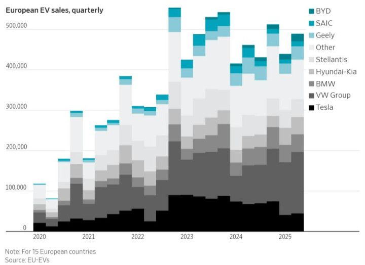 首先,在中国国内,电动汽车和混合动力汽车的销量2024年首次超过内燃机汽车。2025年第一季度,本土品牌电动汽车的销量更是占电动汽车总销量的75%。
