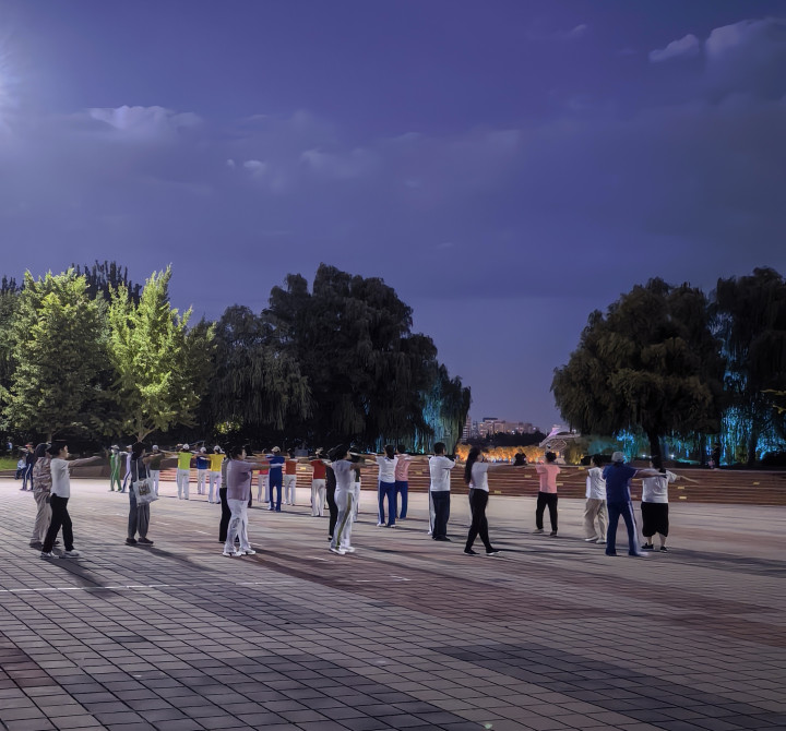 李华个子高,步伐稳,站在队中最是醒目,也受到一些女队员的欢迎。几位性格外向的阿姨常围在他身边说笑,如同“仰慕者”。梅阿姨偶尔也想上前听听,“上个月,就有人因散场后向李华多请教了几句,便被传了闲话,遭到孤立,气得三天没来锻炼。”梅阿姨说。